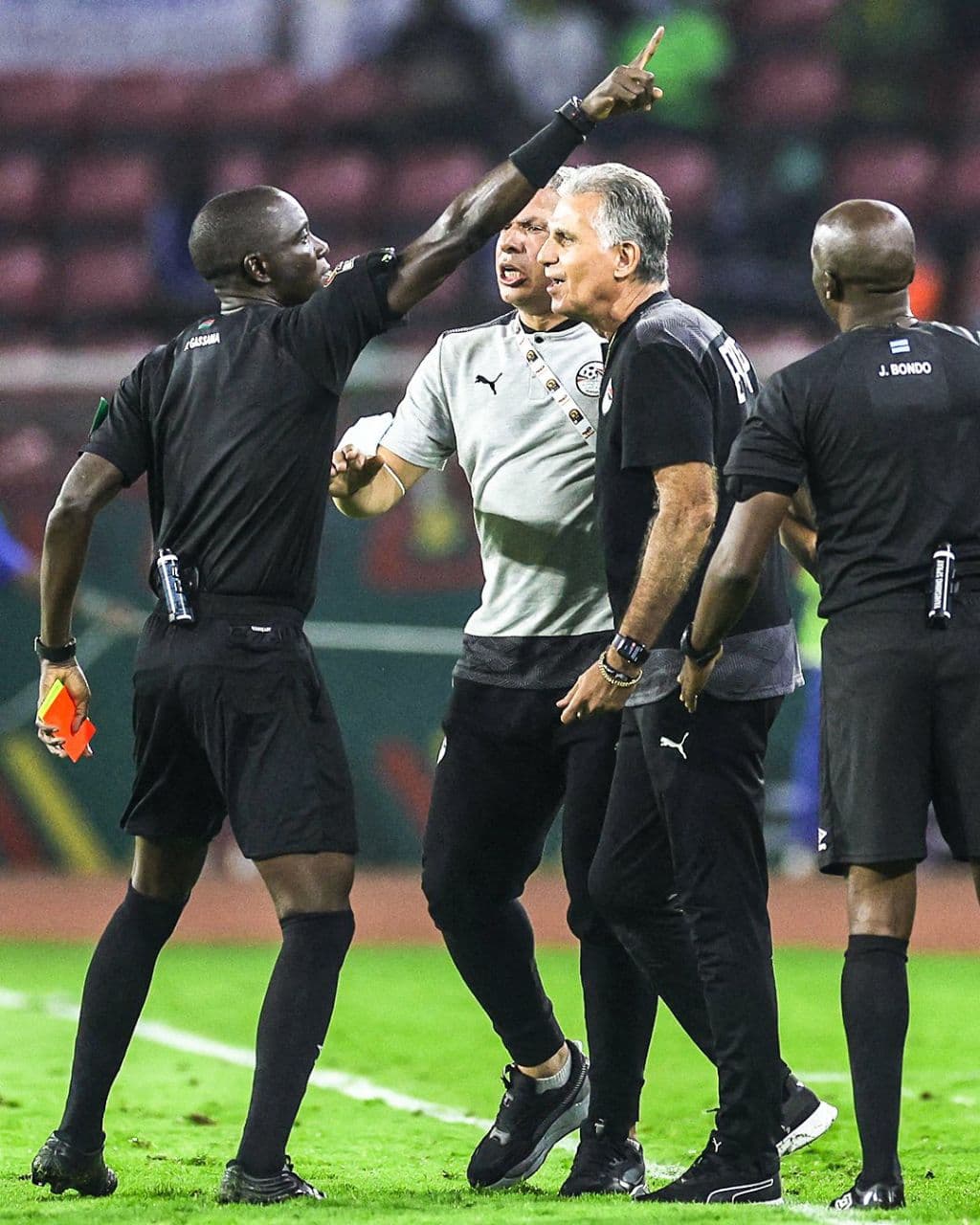 فدراسیون فوتبال مصر به انتخاب باکاری گاساما، داور باتجربه، برای قضاوت دیدار نیمه نهایی اعتراض کرد و ظاهرا دلیلی بهتر از این نداشت که او قضاوت دیدار مرحله گروهی آنها برابر نیجریه که با شکست این تیم به پایان رسیده بود را برعهده داشت. گاساما با سری تاس و چشمانی بیرون زده شباهت بسیاری به کولینا دارد، دوست دارد تصمیماتش را به بازیکنان تحمیل کند و وقتی کیروش در اعتراض به ضربه آزادی که اوایل بازی نزدیک خط میانی میدان به ضرر تیمش اعلام شده بود در کنار زمین زانو زد، به او هشدار داده و به دلیل اعتراض و بدرفتاری با نشان دادن دو کارت زرد به این مربی، او را در نیمه دوم اخراج کرد.