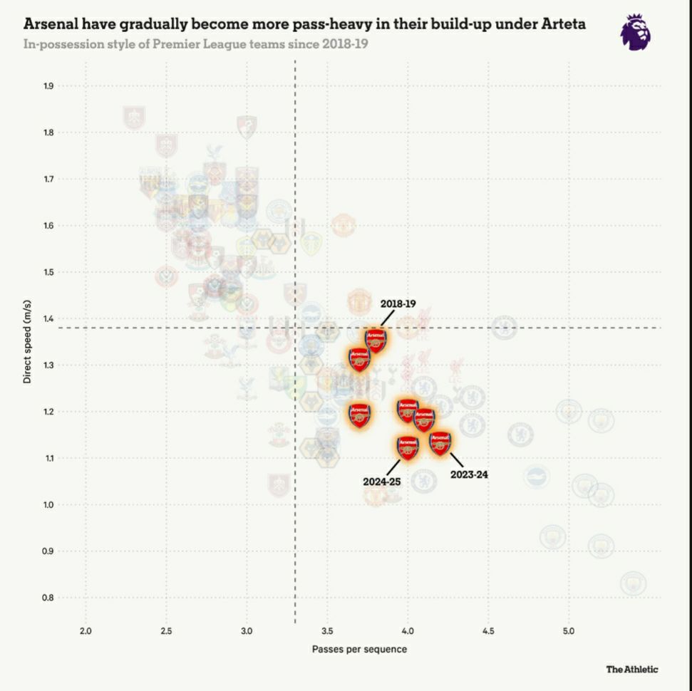 با اینکه در طول فصول اخیر تا حد زیادی موفق بودهاند، رویکرد دقیق آرسنال در بازیسازی گاهی میتواند آنها را در برابر تیمهایی با پرس شدید و سازمانیافته، دچار مشکل کند.